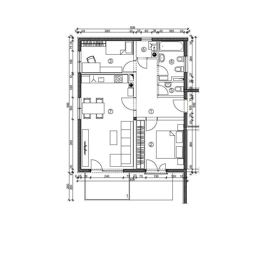 - Nenatkriveni balkon 1 - 6,60 m2 x 0,25 1,65 m2